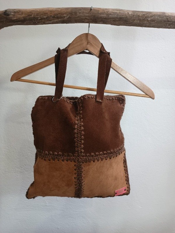 Bolso artesanal en cuero natural con detalles tejidos a mano. Práctico, resistente y con un diseño boho único, perfecto para acompañarte todos los días.