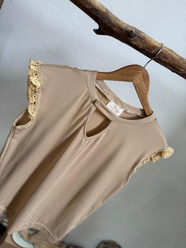 Remera de algodón suave con detalles tejidos en las mangas, un diseño que combina lo simple con lo artesanal. Su textura natural brinda comodidad y frescura, mientras que los apliques tejidos aportan un toque boho y distintivo. Ideal para quienes buscan una prenda versátil con personalidad, perfecta para usar a diario o elevar un look casual con un detalle único hecho a mano.